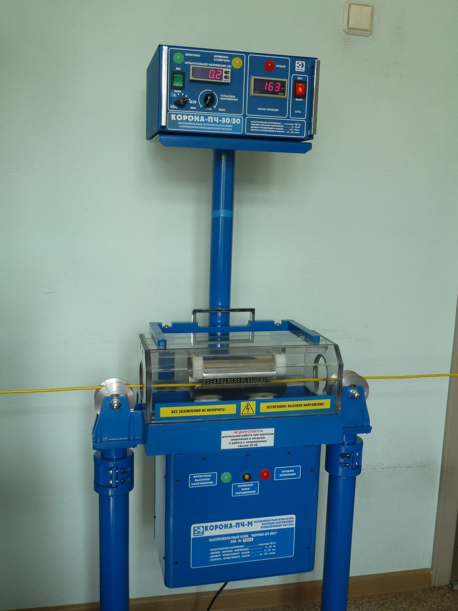 Наиболее развита группа испытателей "на проход", удовлетворяющая всё разнообразие требований, указанных в технических условиях на кабельные изделия. Сюда относятся аппараты для испытаний переменным напряжением звуковой частоты "Корона-ЗАСИ", испытатели импульсным напряжением "Корона-ИАСИ" и испытатели напряжением промышленной частоты "Корона-ПЧ".